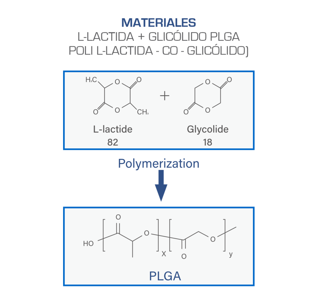 El sistema de placas Biobsorb está fabricado con poli(L-lactida-co-glicólido) 82:18. Esta materia prima se forma mediante la copolimerización de L-lactida y glicólido. Este copolímero es biocompatible, absorbible y osteoconductor. Proporciona la resistencia física necesaria para la reconstrucción del hueso cráneo-maxilofacial.
